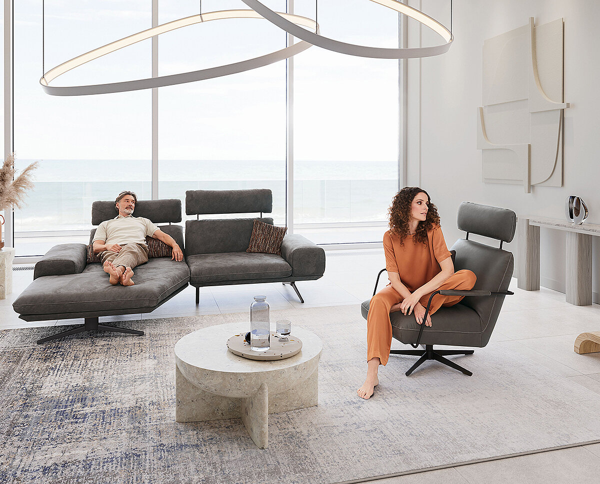 Relaxsessel mit manueller oder motorischer Verstellung – Rückenlehne und Fussstütze ergonomisch abgestimmt. Optional mit Drehfunktion, Kopf- und Lendenstütze. In Stoff oder Leder, pflegeleicht und langlebig – für entspanntes Lesen, Fernsehen oder eine kurze Auszeit.